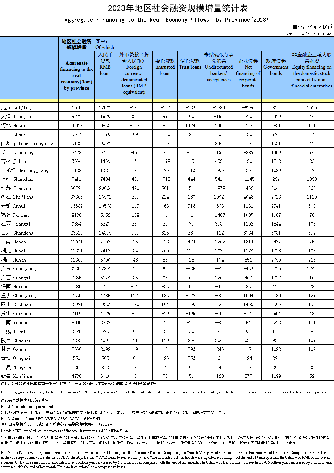 2023年地区社会融资规模增量统计表