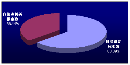 根据《反洗钱法》的规定,中国人民银行对可疑交易活动经调查仍不能排除洗钱嫌疑的,应当立即向有管辖权的侦查机关报案。2007年,中国人民银行共向侦查机关报案554起,占全部调查线索数量的36.11%(见下图),涉及金额折合人民币约2295亿元。从地域分布看,报案主要集中在山东、上海、广东、浙江、辽宁和云南等地。