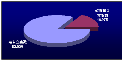 2007年以来,公安部认真贯彻落实《反洗钱法》,注重指导地方公安经侦部门办理洗钱犯罪案件,先后部署和协调各地公安机关以涉嫌洗钱罪立案侦查了多起洗钱案件。根据中国人民银行的统计,2007年,各地侦查机关(含公安机关、海关缉私部门等)针对中国人民银行的报案线索共立案侦查94起,侦查机关立案侦查数约占报案数的17%(见下图)。其中广东、上海和江苏等地侦查机关的立案侦查数量较多,约占全国立案侦查总数的19.1%、13.8%和12.8%。中国人民银行经过反洗钱调查后的报案线索已经成为各地侦查机关发现洗钱犯罪线索的重要来源,有效提高了公安机关主动发现和控制犯罪的能力。