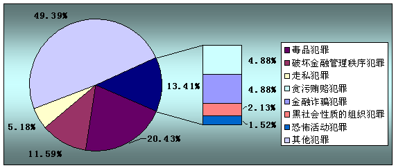 从协查涉嫌洗钱案件涉及的上游犯罪类型进行分析,涉及毒品犯罪的最多,约占总数的20.43%;其次是涉及破坏金融管理秩序犯罪的,约占总数的11.59%;涉及非《刑法》规定上游犯罪的约占总数的49.39%(见下图):