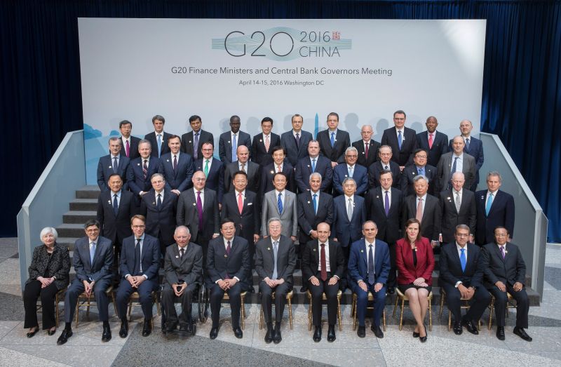 2016年4月14日至15日,二十国集团(G20)财长和央行行长会议在美国华盛顿举行。中国人民银行行长周小川和财政部部长楼继伟共同主持会议。会议主要讨论了当前全球经济形势、增长框架、国际金融架构、投资和基础设施、金融部门改革、国际税收合作、反恐融资、绿色金融及气候资金等议题,并发表了联合公报。
