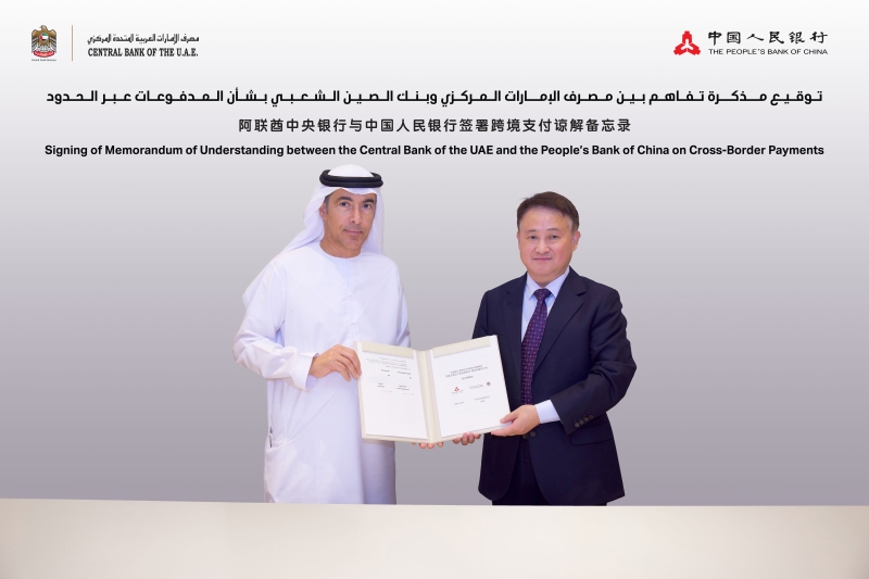潘功胜与哈立德签署《中国人民银行与阿联酋中央银行关于开展中国-阿联酋跨境支付互联互通的谅解备忘录》