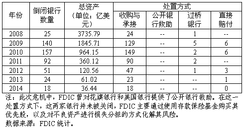表2 2008-2014年美国倒闭银行处置方式