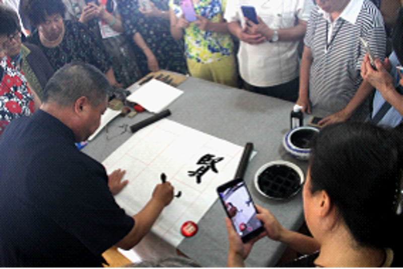 课程开始前,韩如意局长详细介绍了张铜彦教授的书法造诣。之后,张教授以现场创作示范、点评为开端,从什么是书法“点题”,他讲到,书法是以汉字为载体,借助笔、墨、纸、砚书写材料和工具,按照一定的书写法则来表现价值取向、思想情感和审美趣味的书写艺术。到为什么学习书法“破题”,他讲到,文化是民族的血脉,是人民的精神家园。文化自信是更基本、更深层、更持久的力量。中华文化独一无二的理念、智慧、气度、神韵,增添了中国人民和中华民族内心深处的自信和自豪。再到怎样学好书法“解题”,他讲到,写字是一门实践的艺术,字无百日功,入门不难,但真正写好一种字体,绝非易事,学好书法首先要把字写好,进而提高标准,讲求字法、笔法、墨法和章法,体现素养,写出情感,写出风格,最终上升到书法艺术。课间,张铜彦教授向大家介绍了书法艺术的演变过程,从笔墨宣纸讲到字体、字形结构、书写要素。