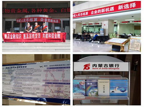 组织人行各盟市中支开展形式多样的跨境人民币业务宣传活动。巴彦淖尔市中支在乌拉特中旗甘其毛都口岸举行的中蒙文化交流周暨那达幕盛会之际,采用通俗易懂的方式向边境地区企业和牧民开展跨境人民币业务宣传活动。在《巴彦淖尔日报》上宣传跨境人民币业务优势特点、相关产品、办理流程;呼伦贝尔市中支从地区实际出发,深入到满洲里口岸开展宣传活动,印制并发放俄文对照宣传折页,提升了宣传的针对性和实效性。