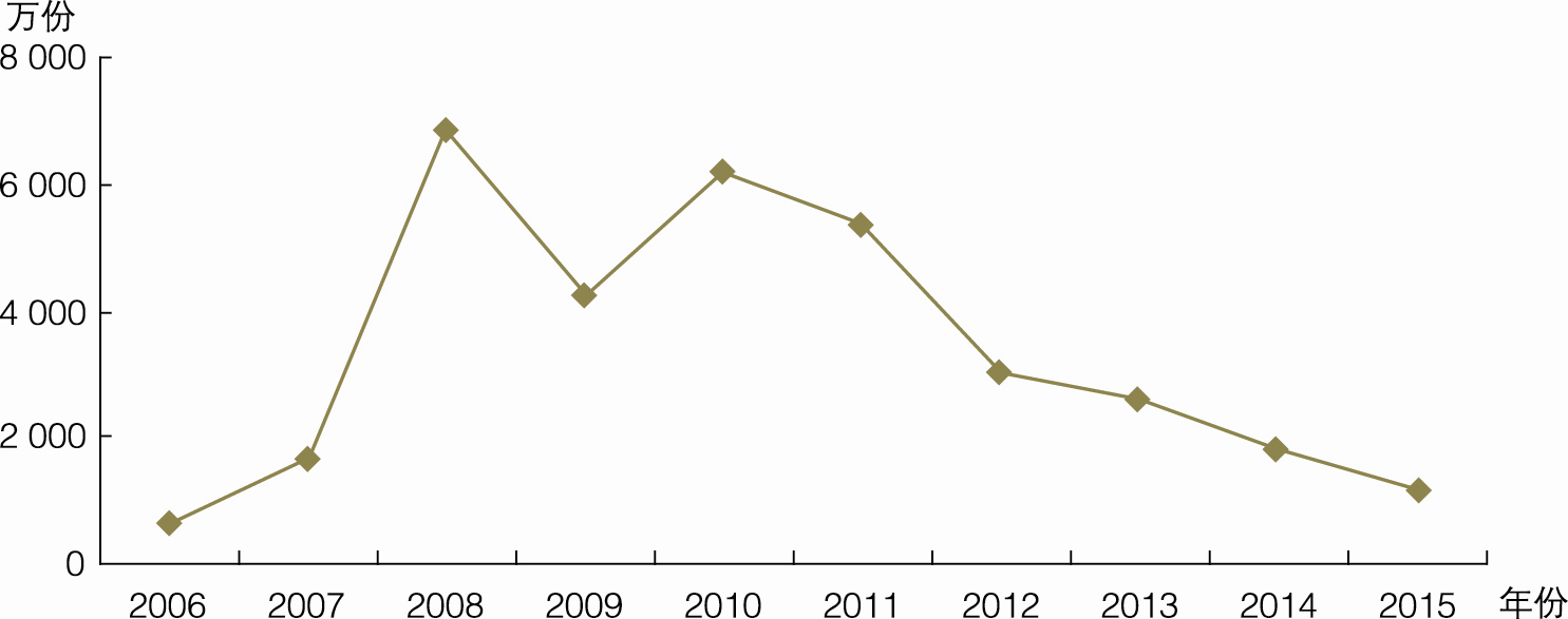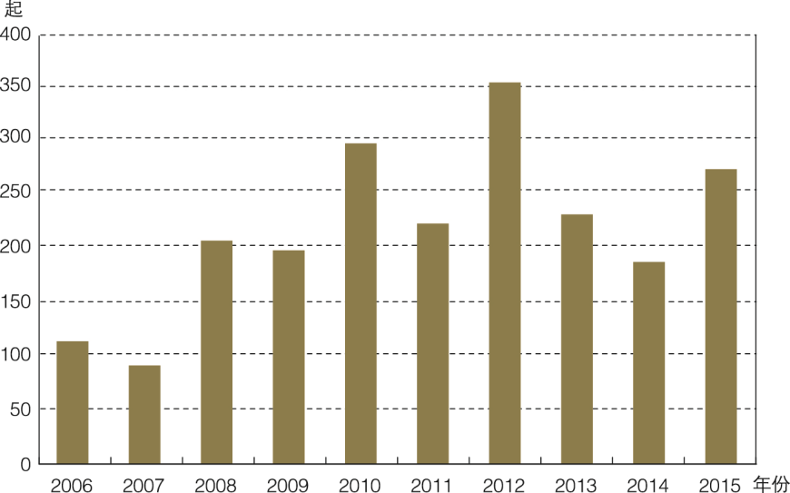2006年-2015年金融系统配合侦查机关破获涉嫌洗钱案件统计 |