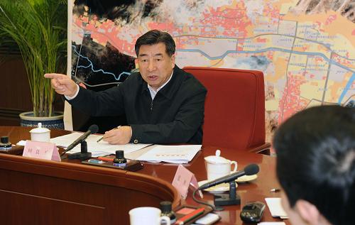 4月21日,中共中央政治局委员、国务院副总理、国务院抗震救灾总指挥部总指挥回良玉在北京主持召开总指挥部第八次全体会议。新华社记者张铎 摄