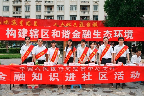 10余名团员青年充分结合自己的专业特长和工作技能开展宣传,让社会公众了解金融消费者在购买金融产品或接受金融服务中的相关权利、义务和风险。本次活动得到上级行的关注,南宁中支苏阳副行长在河池市委市政府领导陪同下亲自到现场检查指导宣传活动,河池电视台等新闻媒体也对活动进行了专题报导。通过开展“金融知识进社区”系列活动,不仅锻炼了青年队伍,而且深入社区宣传金融知识,提高了社会公众的金融维权意识,推动辖区金融消费者权益保护工作向纵深发展。