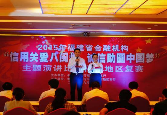 18.福州中支举办福建省银行业金融机构“信用关爱八闽情 诚信助圆中国梦”主题演讲比赛,参赛选手从金融机构征信从业人员的视角,通过身边的征信人、征信事,畅谈对征信的理解和感悟。