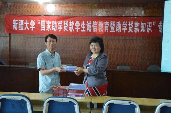 31.乌鲁木齐中支走进新疆大学、新疆艺术学院、新疆医科大学,结合真实案例,用双语向在校学生讲解与大学生息息相关的征信知识,并赠送征信知识图书。