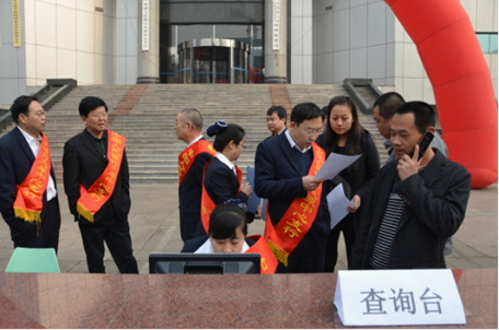 3月15日,石家庄中心支行与省级金融机构联合开展《条例》专题宣传活动。活动采取悬挂条幅、LED显示屏播发宣传口号、综合服务大厅前设立宣传台发放宣传手册和现场信用报告查询等形式,取得良好的效果。