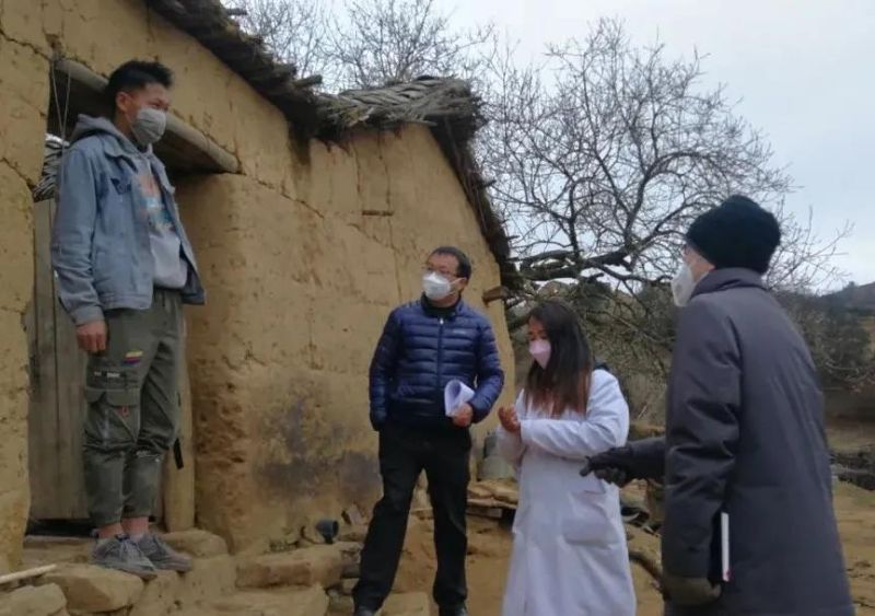 (驻村队员们逐户排查疫情,做好返乡村民隔离检测)