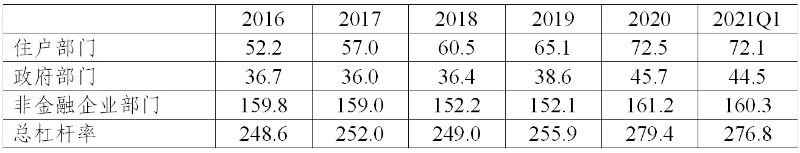 表1 2016年以来我国杠杆率情况(%)