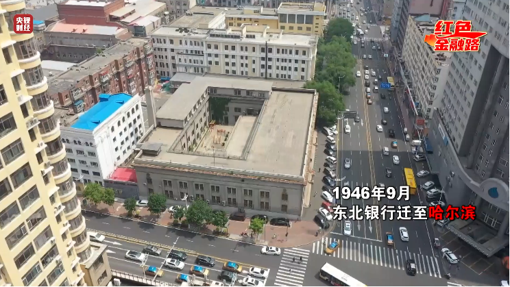 记者在哈尔滨市道里区田地街和尚志大街的交口处,找到了一栋1935年建成的建筑,这里曾经是伪满洲中央银行哈尔滨支行的旧址。1946年随着战争形势逐渐好转,9月2日,东北银行迁回哈尔滨后就在这里办公。