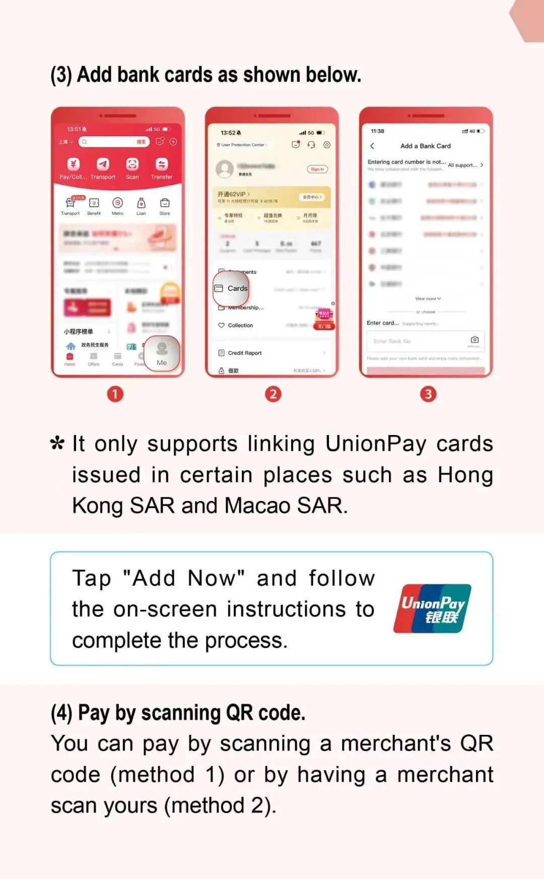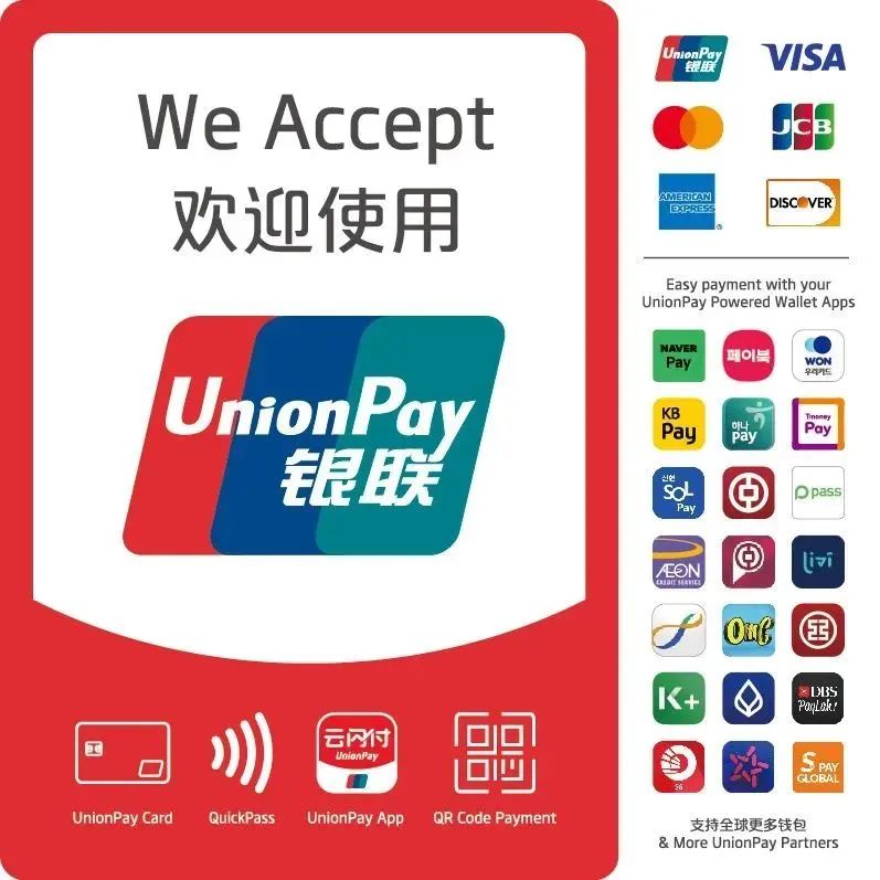 You can use UnionPay, Alipay, WeChat and some overseas electronic wallets for convenient mobile payment. Come and experience it!