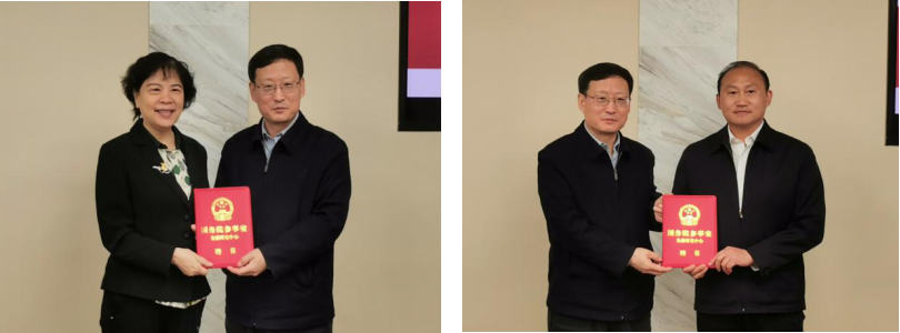 国务院参事室党组成员、副主任、金融研究中心决策委员会副主任张彦通为新聘研究员王志强、王宇颁发聘书并作了重要讲话。 |