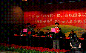 11月27日,中国人民银行成都分行、四川省教育厅主办,四川师范大学、中国农业银行股份有限公司四川省分行协办的 “2009年‘农行杯’四川高校国家助学贷款和‘百讲千传’征信知识竞赛决赛暨颁奖仪式”隆重举行。四川日报、四川教育电视台等22家新闻媒体全程进行了采访。